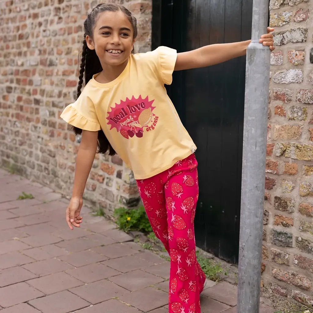 Broek flared rib (strawberry fields)