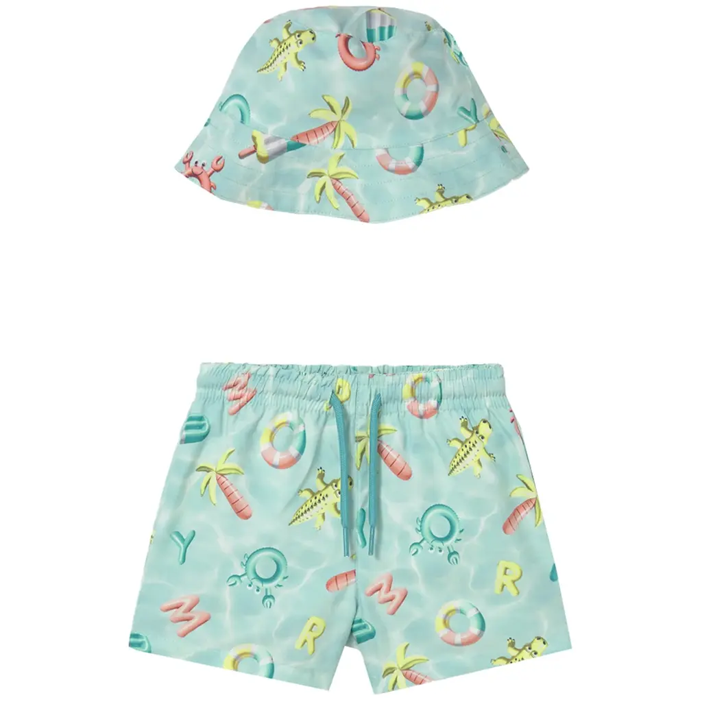 Zwembroekje met zonnehoedje (aquamarine)